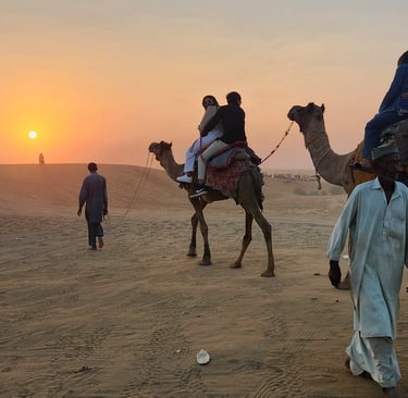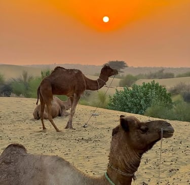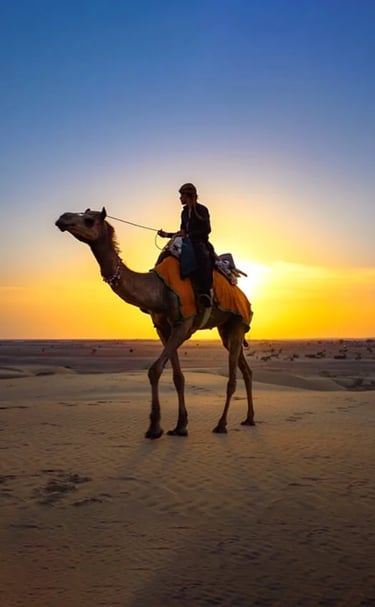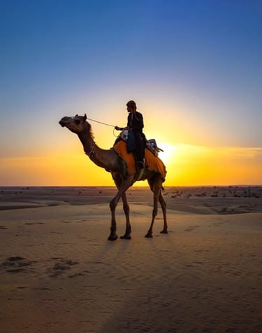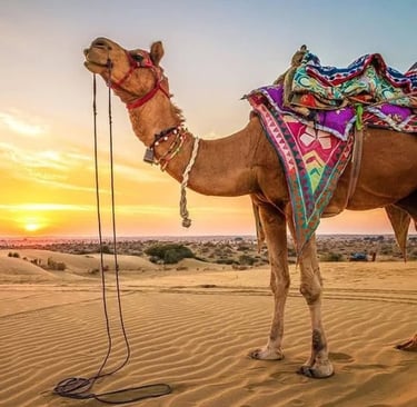 A Camel Safari in Jaisalmer is one of the most iconic and unforgettable ways to explore the enchanting Thar Desert. Often referred to as the “Ship of the Desert,” the camel offers a traditional and peaceful way to traverse the golden sands, just as travelers did centuries ago. This safari allows you to immerse yourself in the timeless beauty and solitude of the desert while experiencing Rajasthan's rich cultural heritage.